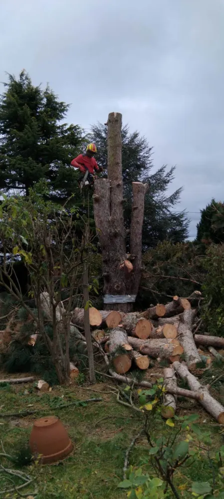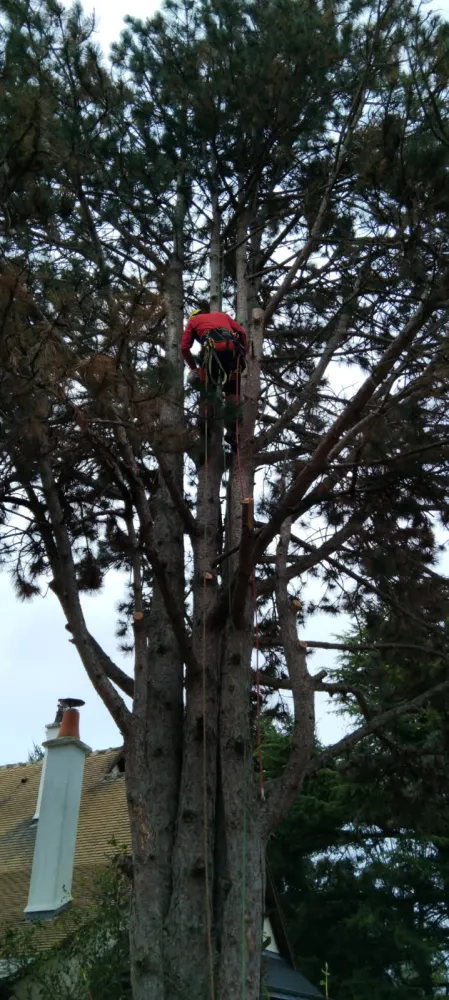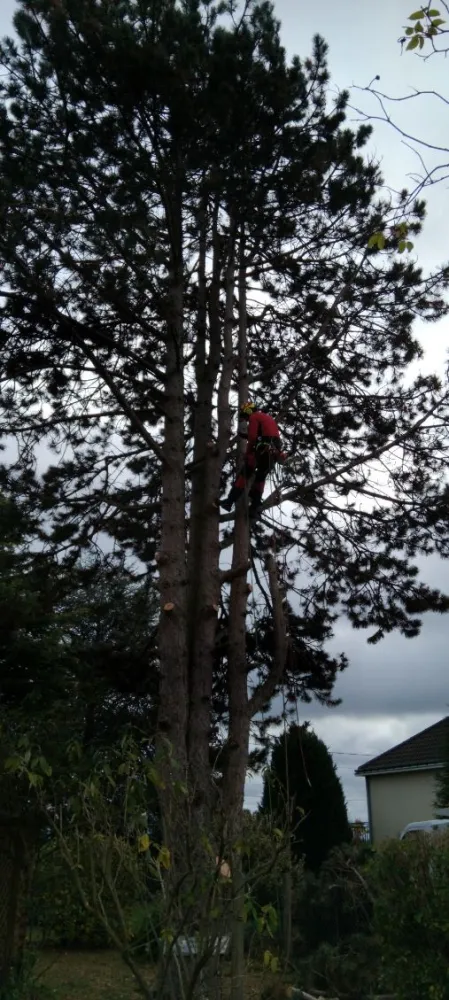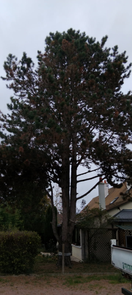 31-10-2025 Élagage Schartier est intervenu pour l abattage d un Pin a Fondettes a la demande du client,car celui-ci était trop près de la maison